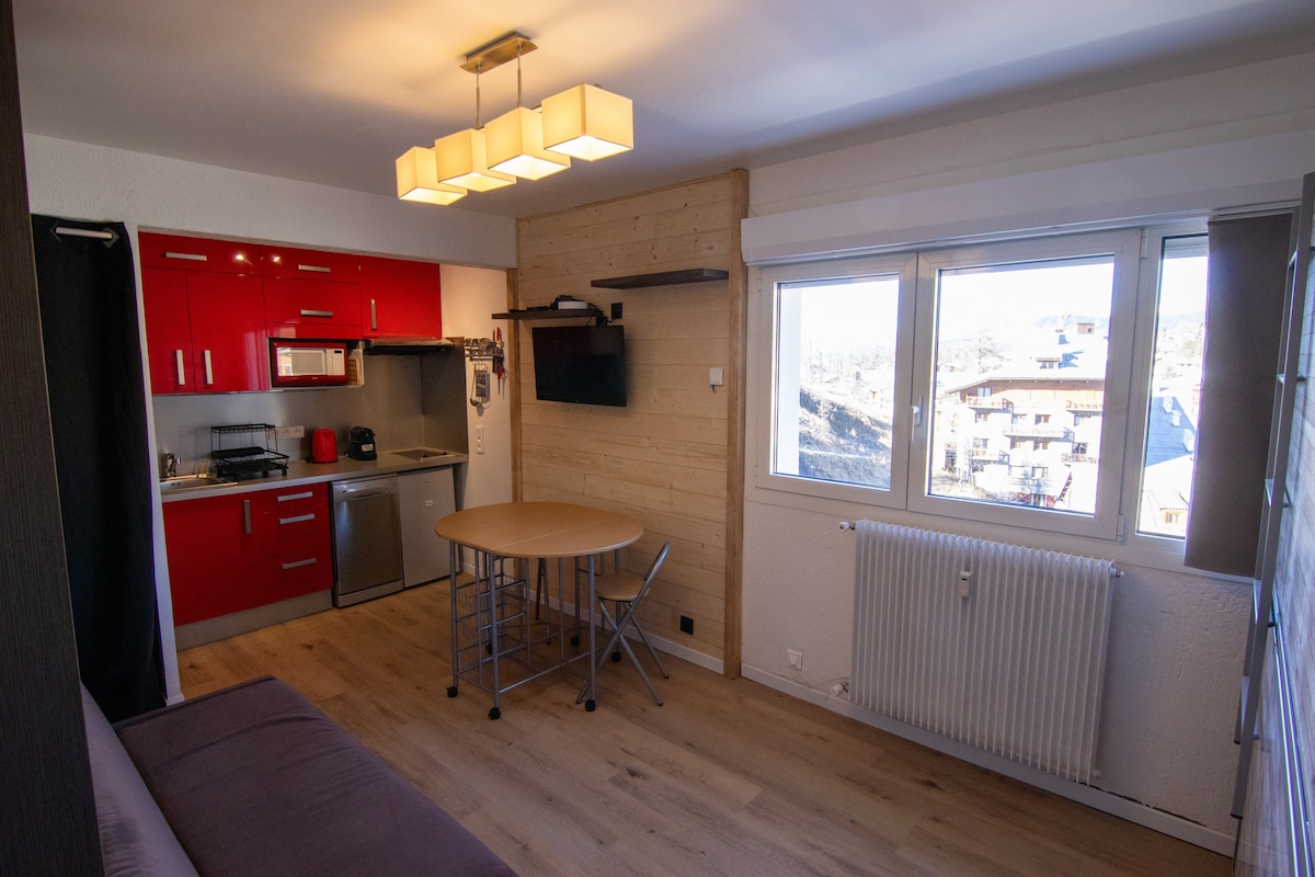 2 pièces tout confort (36m²) au pied des pistes, parking fermé face ascenseur, accès direct appartement, chambre avec lit double 140X190 + chauffeuse 90X190 + grand placard, salon avec canapé lit 140X190, café Nespresso, bouilloire, grille pain, four, micro onde combiné, lave vaisselle, plaque vitro, réfrigérateur, congel, raclette, fondue, sèche cheveux, grande terrasse équipée (16m²) avec une superbe vue panoramique sud, casier à ski, piscine chauffée dans la résidence (ouverte selon date).