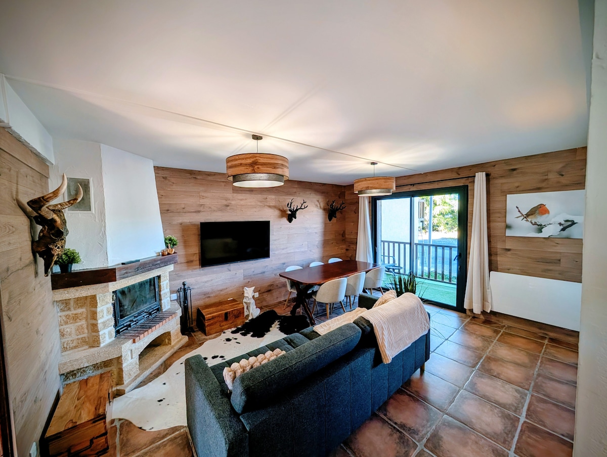 AU PIED DES PISTES, DUPLEX EN DERNIER ETAGE ET PARKING COUVERT. Entièrement rénové par architecte, 60 m², 2 chambres et 2 SDB dont une avec baignoire, 2 wc dont un indépendant, plein sud avec une terrasse, belle vue pistes et montagne. Pas de vis à vis. Pistes à 30 mètres par le téléski du Riou. Situé au cœur du village, pas de voiture nécessaire pendant le séjour. Parking en sous sol couvert. Cuisine équipée neuve et électroménager neuf . LE POÊLE À BOIS N’EST PAS UTILISABLE.