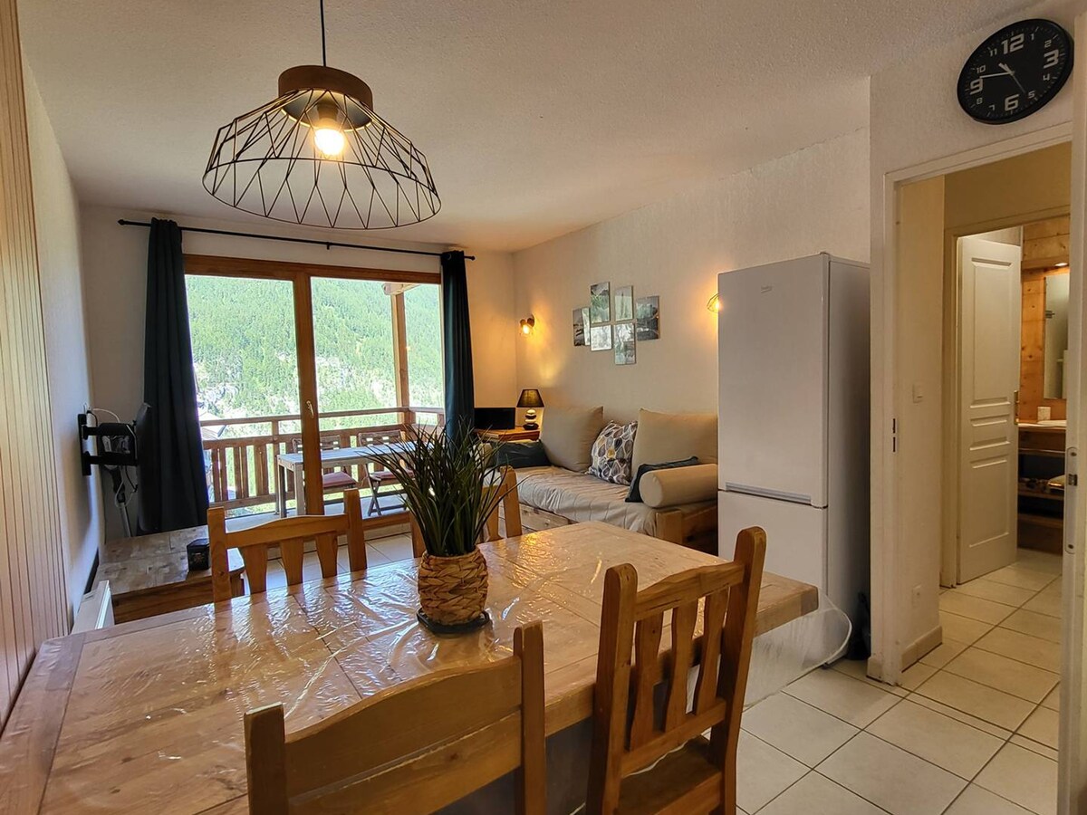 温馨4人房源,位于Les Orres 1800,带泳池、无线网络、车库和床上用品