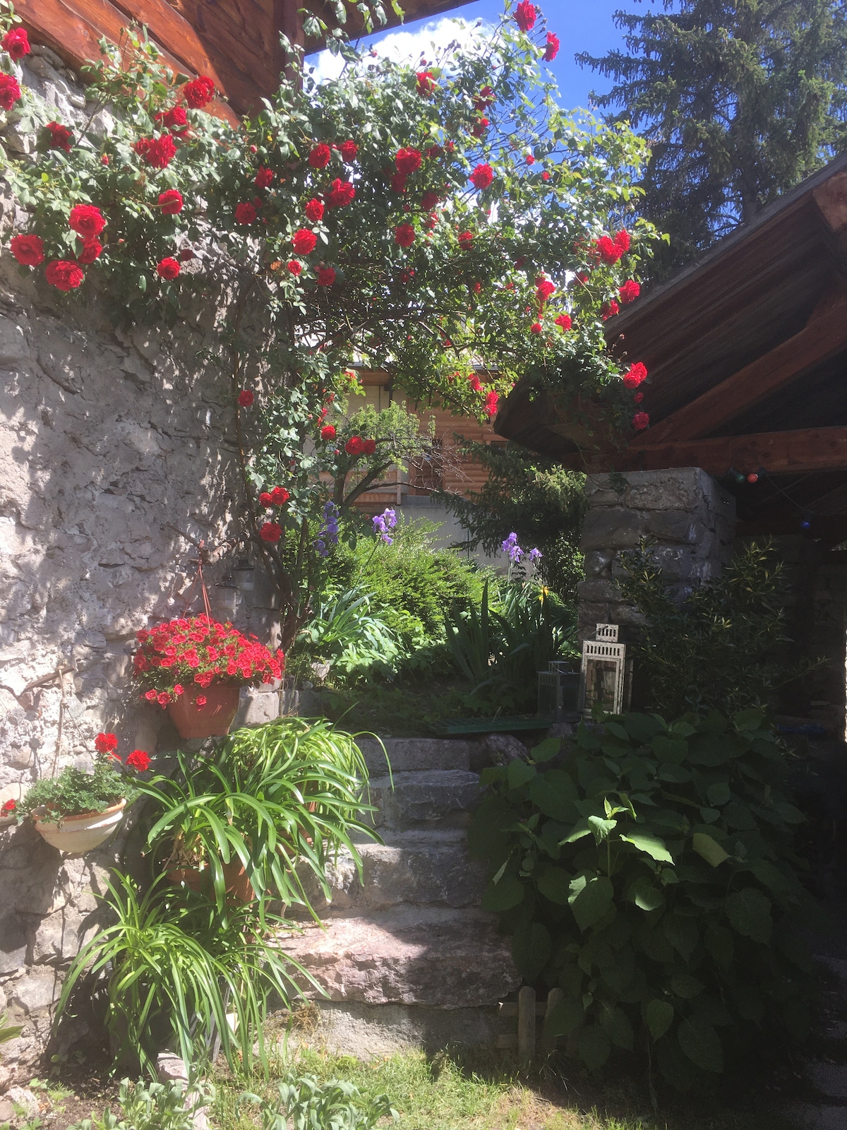 Casa indipendente in pietra, arredata con oggetti della tradizione locale e ricordi di famiglia. Gli spazi sono organizzati su due piani: sotto la sala da pranzo, il bagno di servizio, la cucina ed il salotto con il caminetto; al piano ammezzato la piccola biblioteca con due comode poltrone; infine sopra il bagno con la doccia, la camera matrimoniale, la camera con i letti a castello e infine la camera con i letti singoli. Il punto forte della casa è il grande giardino che guarda le montagne.