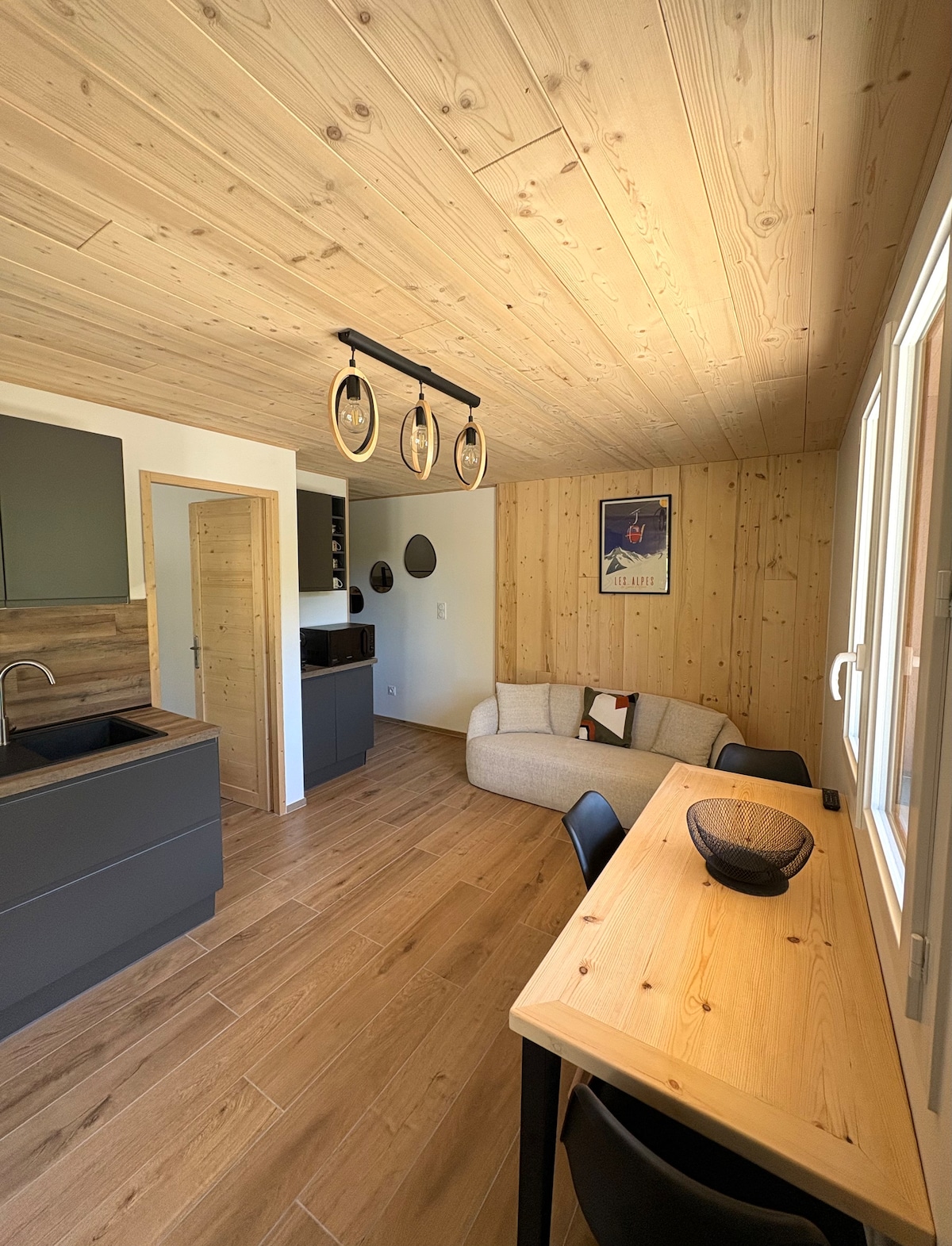 Appartement neuf de 60 m², coeur station, chic et confortable, idéal pour 4 personnes. Proposant 2 chambres avec lits doubles 160 cm, une salle de bain spacieuse, une belle terrasse, Wi-Fi, lave-vaisselle, lave-linge/sèche-linge et appareil à raclette. Casier à skis privatif. Parking couvert avec prise électrique. Pistes à 4 min à pied, commerces et restaurants à 3 min.