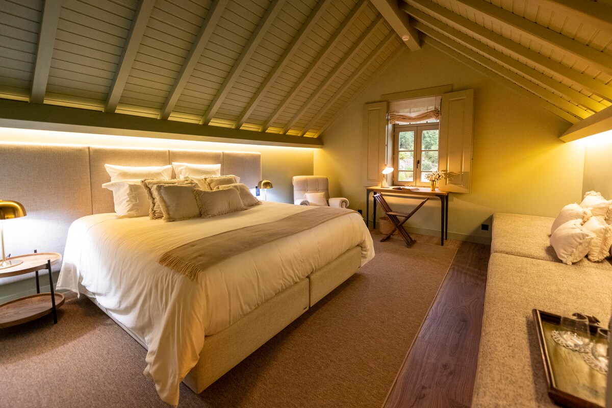 Uma estadia de excelência devido à relaxante vista para o jardim e pátio bem como à sua decoração moderna, numa habilidosa seleção de materiais e objetos, em que não são esquecidas uma cama King Size e a uma casa de banho en suite. A todo este conforto acrescem outras comodidades, como televisão e acesso Wi-Fi gratuito, que tornarão inesquecível a sua visita. É possível acomodar um berço.