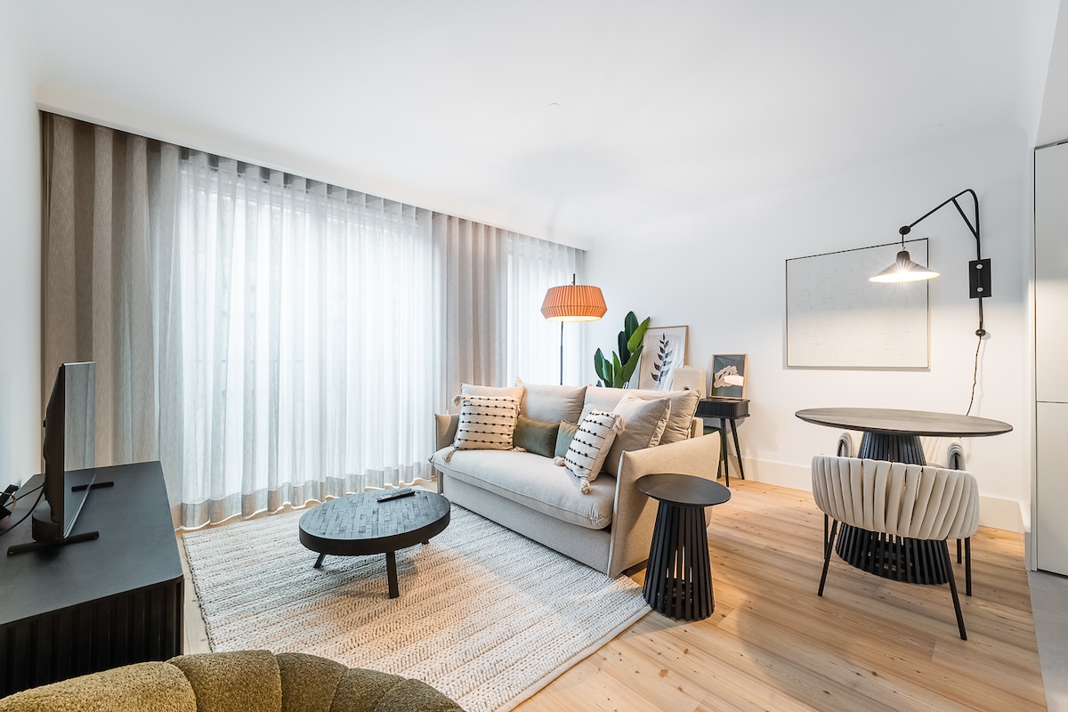 Located on the first floor, this apartment for up to four guests features air conditioning, a washer-dryer combo, a meditation room/mini gym, and a front-faced balcony. The lower-floor bedroom opens to the living room via a pocket door, while the upstairs suite has a private balcony. Near Rua de Santa Catarina and Bolhão Market. For guests traveling with little ones, a baby pack is available on request (€25) and includes a cot with linen, high chair, bathtub, baby amenities, and a baby towel.