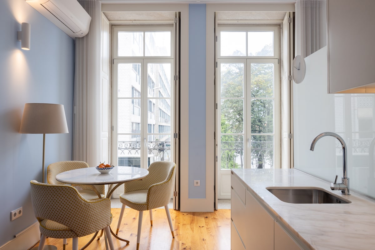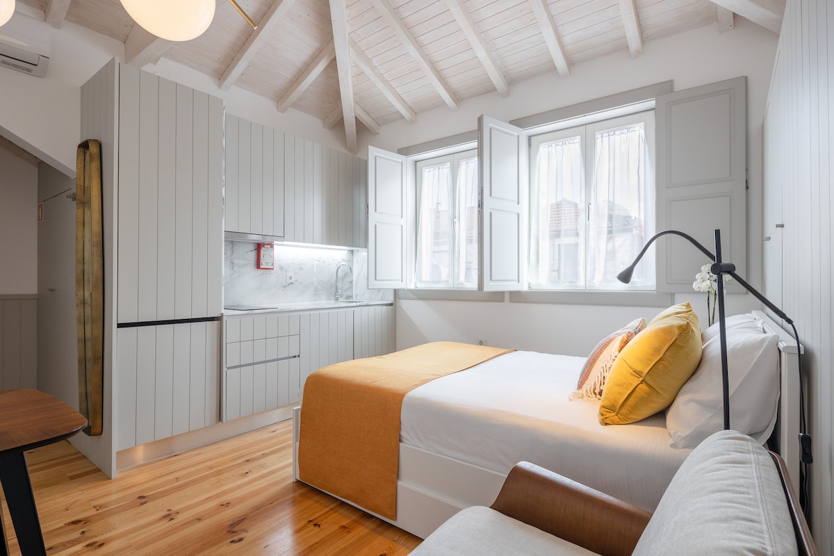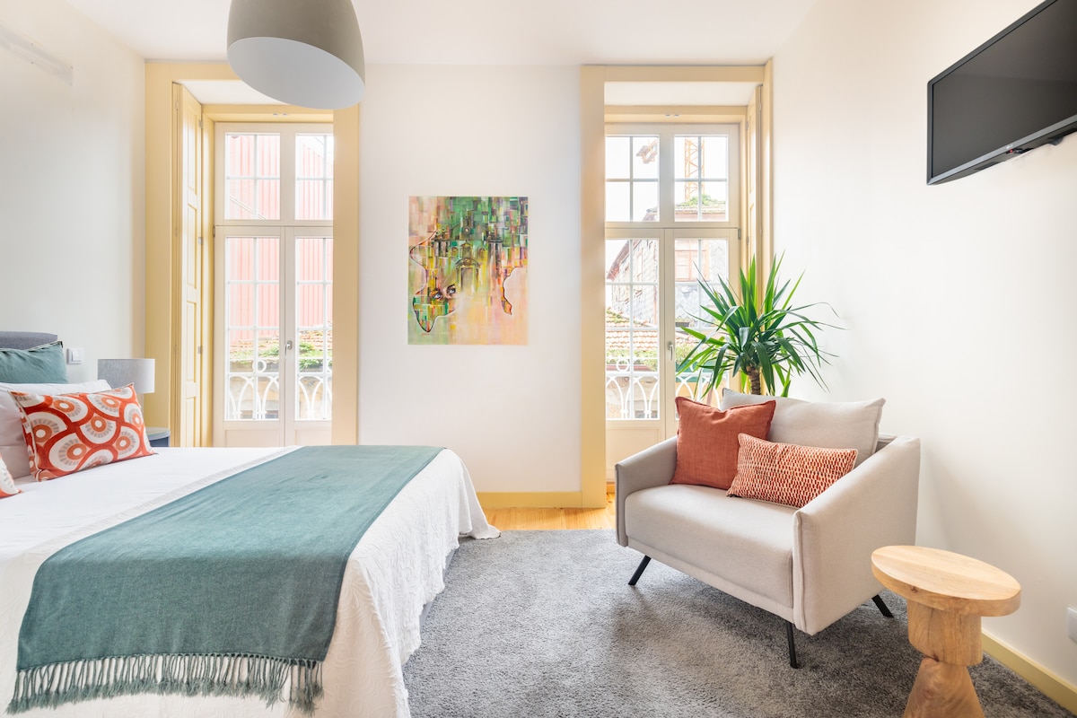 Imagine returning to your refuge apartment & balcony with magnificent panoramic views of the 12th-century Cathedral, its old houses and Douro River, enjoying a Porto Wine glass after exploring the city. In the morning, feel the privilege to awake with an amazing sunrise during your coffee breakfast. Retreat to the serenity of your cozy bedroom, with a high-quality queen-sized bed and premium linens. Discover the historic Estremoz Marbles decorating your modern fully-equipped kitchen & bathroom.