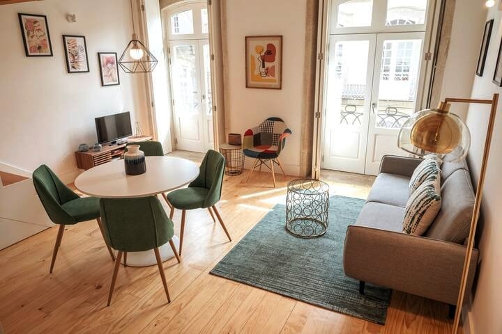 Imagine sunlight streaming into your spacious living room as you open the doors directly onto a balcony, overlooking the lush greenery below. Located in Porto’s iconic Miguel Bombarda Arts District, this spacious home blends central convenience with quiet outdoor peace. Enjoy slow mornings in the garden with your pet or explore the local galleries just steps away. -> Ready for a peaceful escape? Book now or message us to learn more! More details below ⬇️