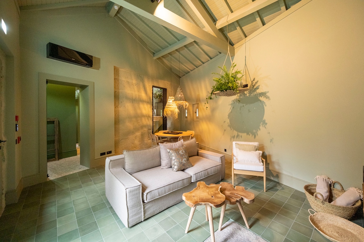 Com janelas panorâmicas que conferem ao ambiente uma sensação de amplitude, permitem a entrada de luz natural e vistas deslumbrantes. Dispõe de uma sala de estar, uma área de refeições totalmente equipada, um quarto independente com casa de banho privativa e cabine de duche, uma casa de banho no quarto e um SPA Jacuzzi numa plataforma exterior. As Villas Monte dos Xistos, na montanha e rodeadas por vinhas e bosques, desfrutam de uma localização, a 10 km do centro histórico de Guimarães