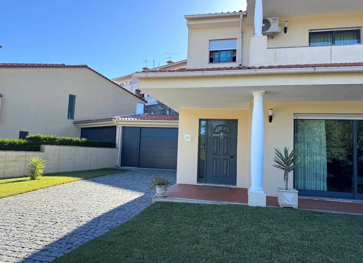 Moradia inteira Situa-se na cidade de Braga. É constituída : 1 suite mais 3 quartos de casal, 3 casas de banho, grande sala de jantar e estar com lareira e ar condicionado, grande cozinha equipada, lavandaria, garagem e excelente relvado com chuveiro Possui vistas sobre o parque de jogos de Braga, Bom Jesus, cidade e montanha do Sameiro. A casa localiza-se num raio de 30km da praia e das montanhas da Cabreira e do parque Natural da Peneda Gerês.