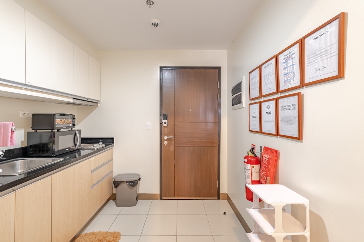 📢 PLEASE READ BEFORE BOOKING "Home Away from Home" – Studio Unit This cozy studio features 1 full/double size bed 🛏️, perfect for 2 people, plus an additional single size floor mattress (about 1 inch thick) 🛋️ that can comfortably accommodate 1 more guest. The extra mattress will only be set up if your party exceeds 2 guests. It’s your perfect urban sanctuary 🏙️, right in the heart of the vibrant Megaworld Complex! 🌟