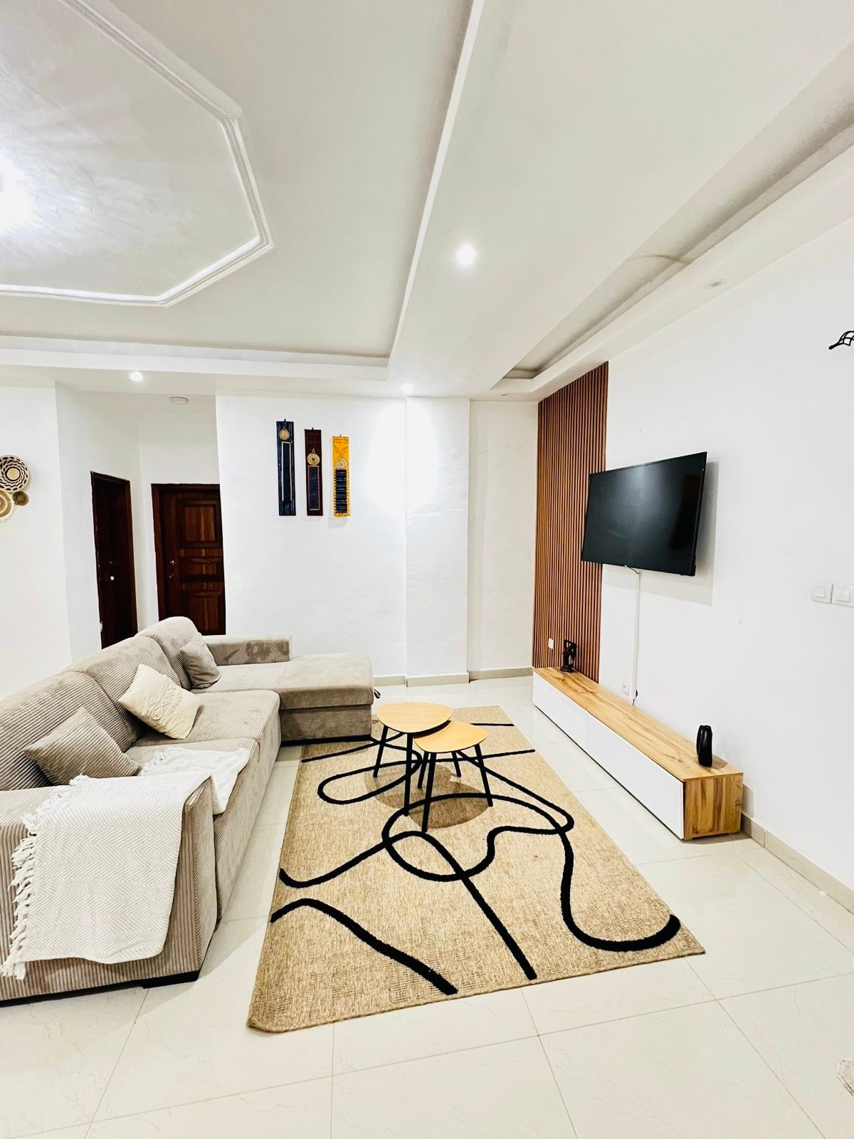 Spacieux F3 de 80 m² à Nongo, à 8 km de l’aéroport et moins de 2km du lycée français et des marchés de Nongo et Kaporo. Idéal pour familles ou pros, avec 2 chambres lumineuses et autonomes, salon confortable, cuisine équipée, salle à manger 6 places. Calme, pratique et fonctionnel. Parfait pour un séjour à Conakry.
