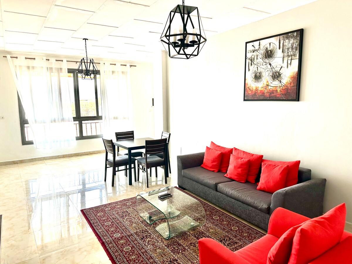 Un condominium de classe, regorgeant deux grandes chambres avec des douches internes toutes climatisées, une autre toilette pour les invités , Quatre grands balcons aux deux extrémités. Un concierge sur place pour vos besoins et des vigiles pour votre vie privée. Les visites sont autorisées par vous. L’électricité et l’eau sont couramment régulières. Pourquoi payer 300 euros à Sheraton pour une chambre tandis que vous avez toute cette panoplie pour vous. Pensez y. Nous sommes là pour vous .