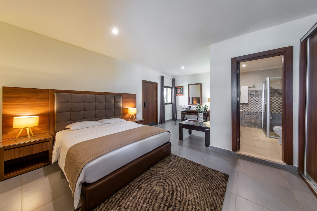 Taille approximative de la pièce : 35m2 Chambres de luxe très spacieuses et récemment rénovées avec vue sur le jardin. Situé au rez-de-chaussée, au milieu d’une végétation tropicale luxuriante et entouré de palmiers. Des lits king size confortables ou 2 lits queen size, des draps 100% coton premium, l’air conditionné, un coffre-fort et le Wi-Fi gratuit complètent l’équipement de cette chambre bien aménagée.