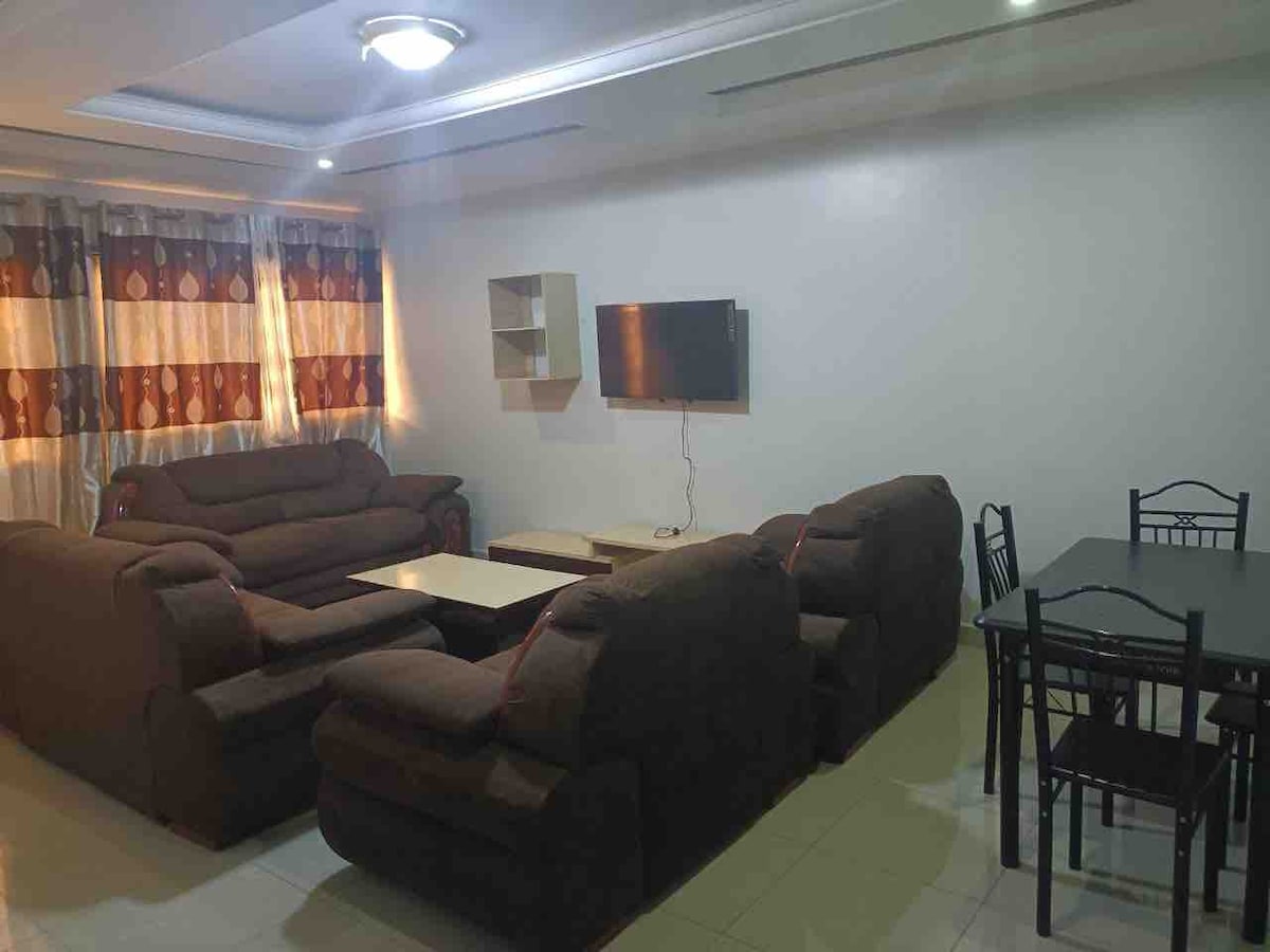 Amusez-vous avec toute la famille dans ce logement chic. Nous vous proposons ce jolie duplex 4 chambres toutes climatisées 2 salons 5 salles de bains 5 balcons . La résidence est située à la T8 et dispose d'un gradien d'une femme de ménage nous mettons à votre disposition des ustensiles de cuisine, une machine pour la lessive, une voiture en location 30€ par jours avec chauffeur Nissan Juke. Le WiFi a la charge du hôte, 50000GN ( il doit lui même le recharger)