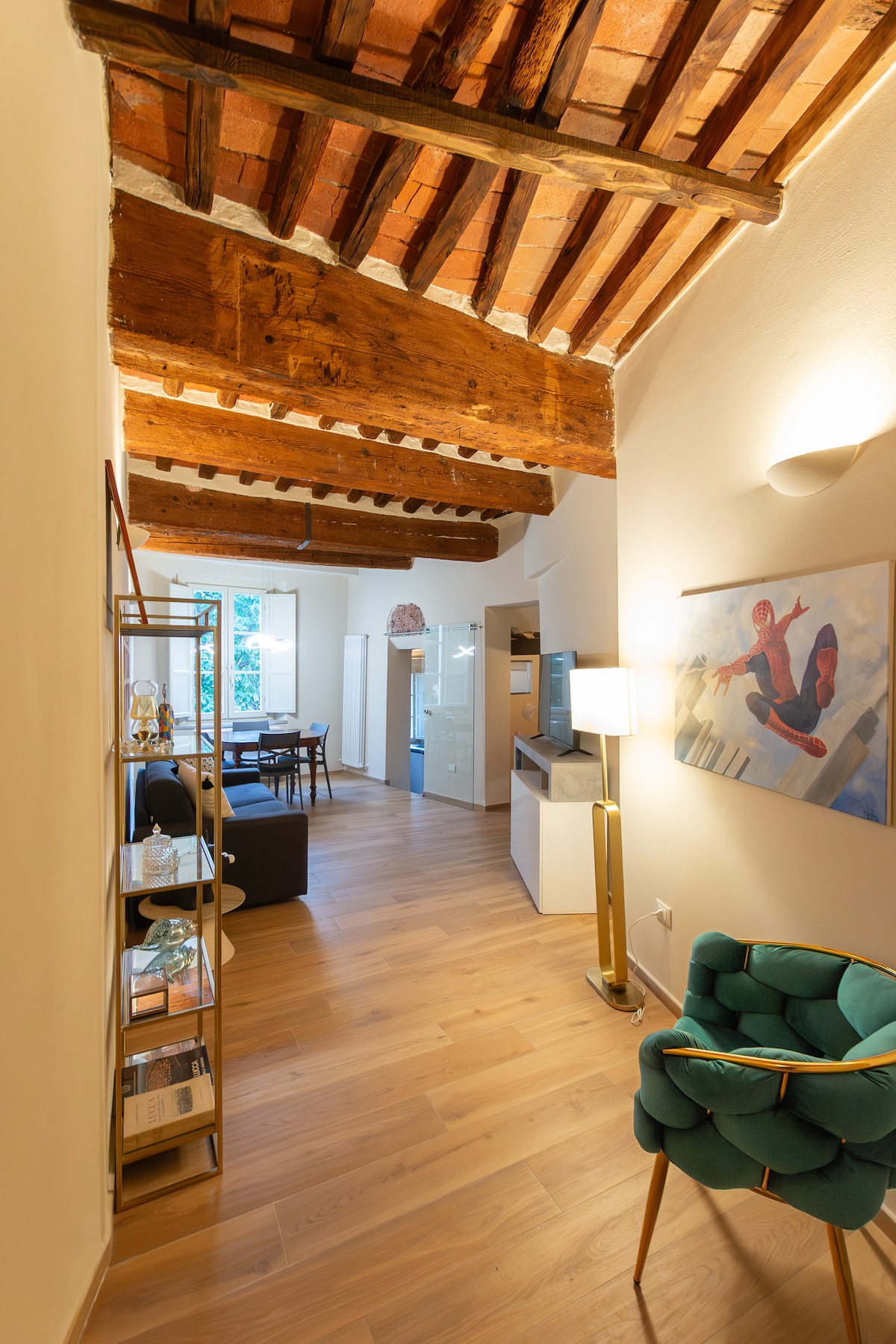 Brand new accomodation,mq 68, fine finishes and furnish, very cozy with all services you need with A/C and optic fiber WIFI. Ground floor of ancient palace in Lucca, few meters away from the iconic Guinigi Tower, one of the most famous attraction in the city. Ideal for people who wants to enjoy at best the city center, but still have quiet and tranquillity in one of the finest quartier of the city. Excellent also as HQ to visit other places in Tuscany all very near like Florence, Pisa, Versilia.