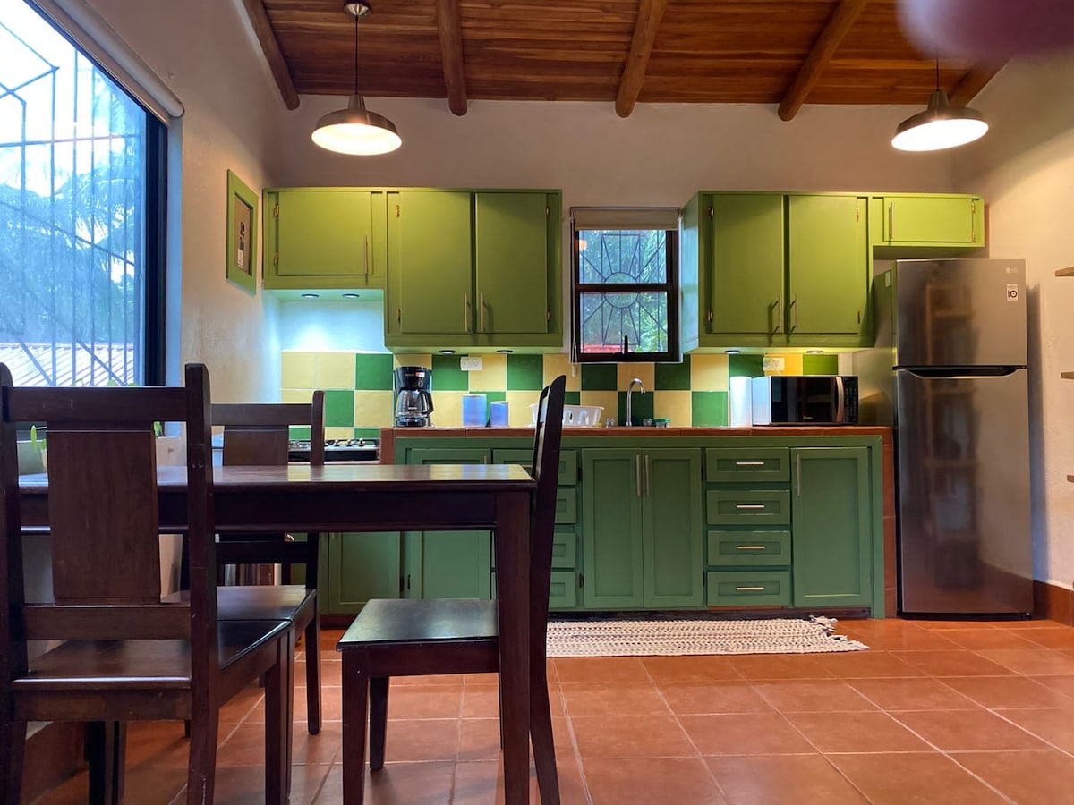 Simple home with modern amenities. Walking distance to Guiones Beach and Bodhi Tree. The house has a full kitchen, a comfortable king-size bed, multiple AC units, hot water, fiber-optic WiFi (300mbps), a new comfortable couch, and a desk for working. Work from home, walk to yoga class at Bodhi, or check the waves with your morning coffee. A perfect home base to enjoy Guiones.