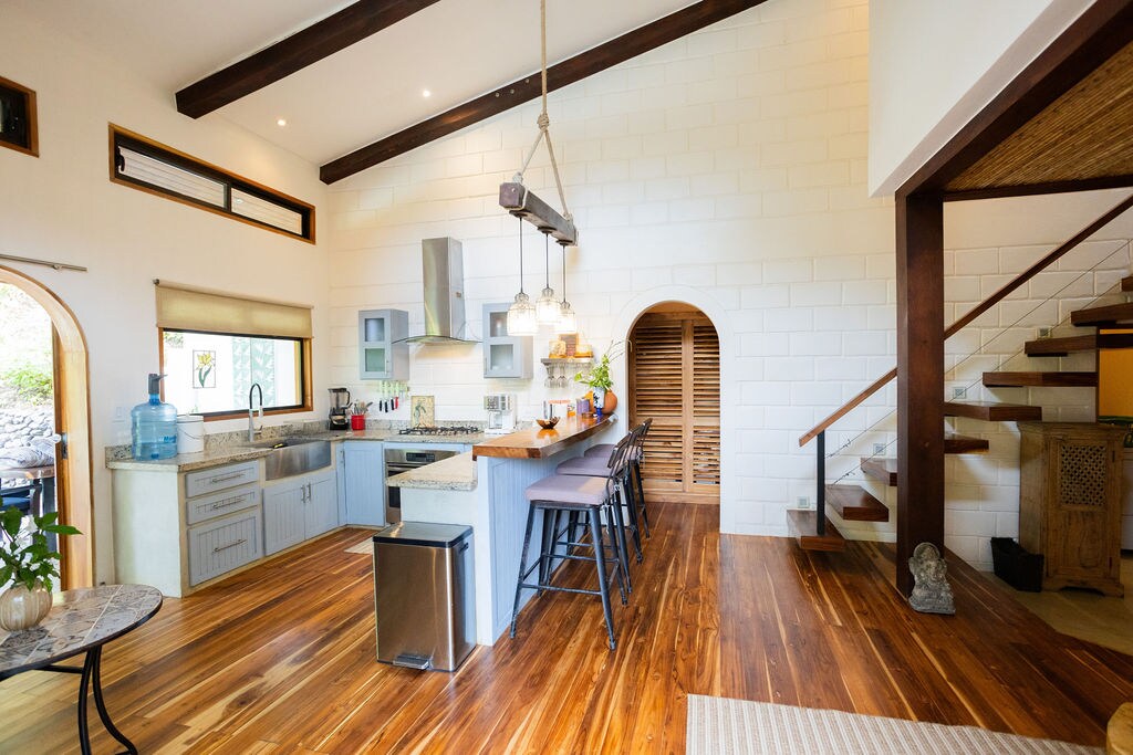 Simple home with modern amenities. Walking distance to Guiones Beach and Bodhi Tree. The house has a full kitchen, a comfortable king-size bed, multiple AC units, hot water, fiber-optic WiFi (300mbps), a new comfortable couch, and a desk for working. Work from home, walk to yoga class at Bodhi, or check the waves with your morning coffee. A perfect home base to enjoy Guiones.