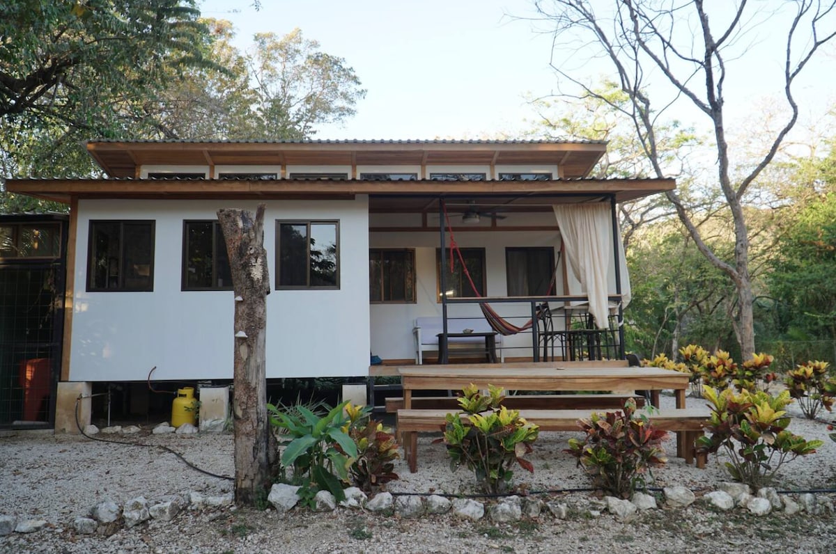 Reconnect with nature in this cute & cosy home, situated in Playa Guiones. Would suit a single person or a couple. 10mins walk to Playa Guiones, close to north Guiones, in a friendly neighbourhood that's between central and north Guiones, all within walking distance. You won’t need a car :) Ample parking space & fast internet! Large patio which looks out to a cute little zen garden. Outdoor shower for post beach rinse-off. No pets please. Weekly cleaning is included for stays 10+ nights.
