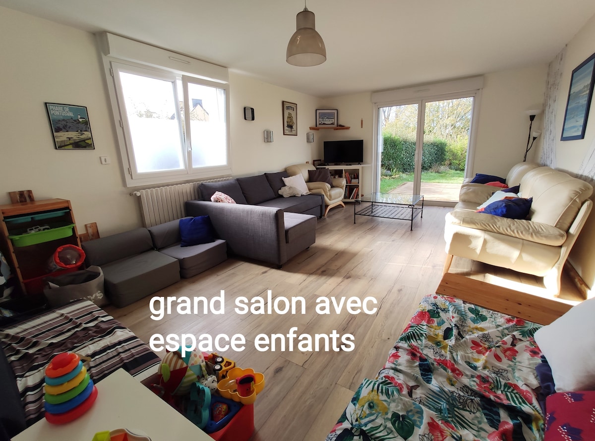 Oubliez vos soucis dans ce logement spacieux de 130 m2 et serein. Le logement, possède une grande salle à manger et un grand salon ouvert sur la cuisine Côté cuisine entièrement équipée et aménagée Le jardin, entièrement sécurisé et privé, pourra vous permettre de profiter des extérieurs. Une grande terrasse aménagé avec coins repas et détende . Le parc de Penfeld, à 5 minutes à pied, idéal pour une balade,