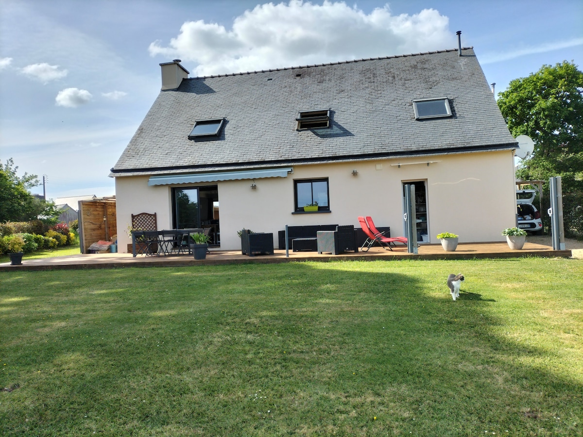 Venez profiter en famille de cette maison neuve qui offre de beaux espaces à l'intérieur et d' un jardin paisible avec un petit ruisseau. Proche de tous commerces à pied ( 5 mins) Idéalement située et proche des incontournables du Nord Finistère à visiter à moins de 30mins en voiture. - Les caraibes bretonnes avec Kerlouan, Brignogan-plage (plages de sable blanc et mer turquoise ) - Daoulas, Logonna-Daoulas -Port de Brest -Lac du Drennec -Presqu'île de Crozon à environ 45 mins