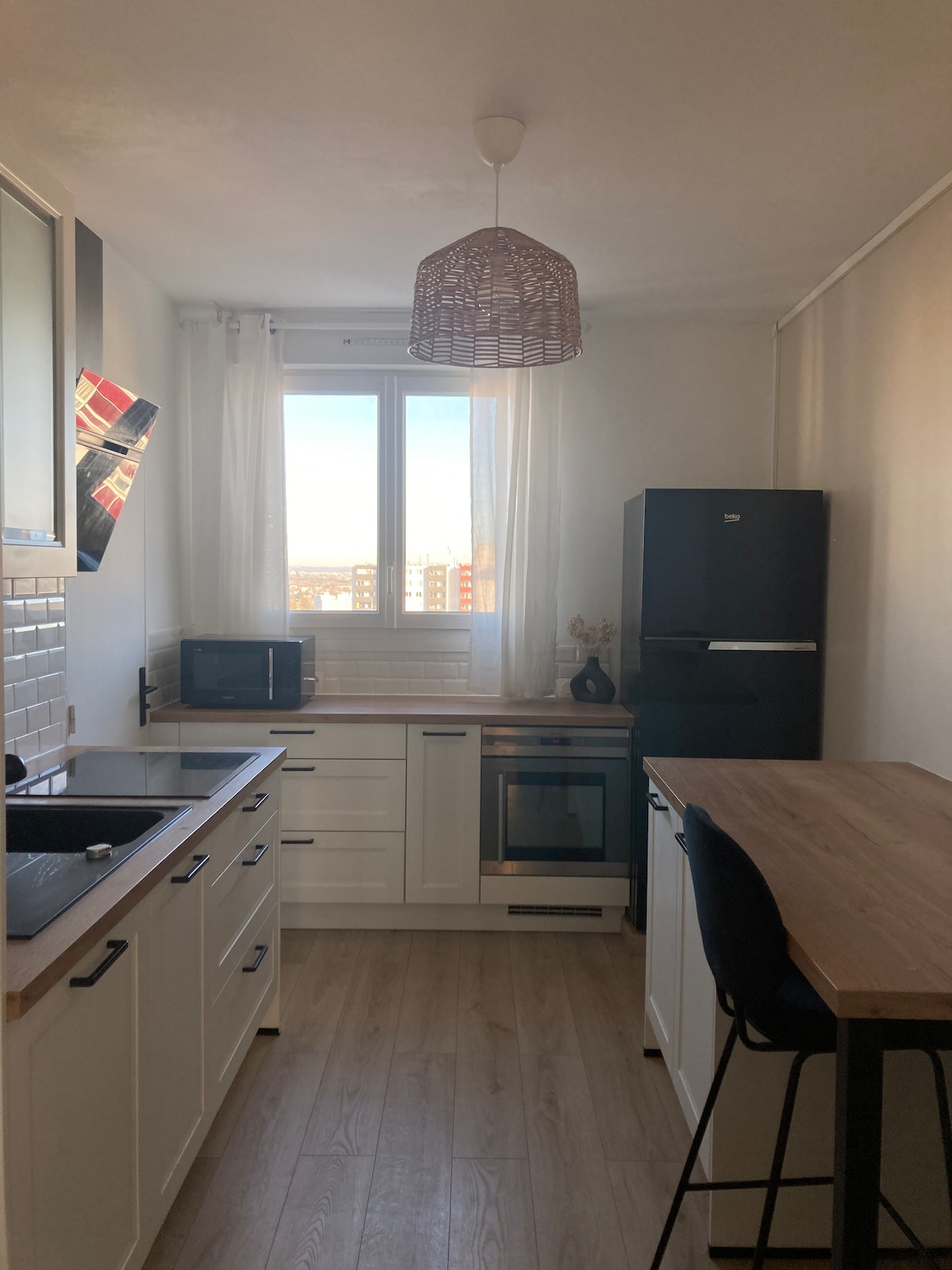 Joli petit appartement entièrement rénové et redécoré Proche tramway , bus et commerces. Quartier très calme. Places de stationnement gratuites dans la rue et parking privé . Couchage, linge de nuit et linge de toilette de qualité. Lit parapluie à disposition ainsi que le protège-matelas Rangement important à l'entrée ( penderie et tablettes , y compris pour les bagages) Volets roulants permettant le noir total.