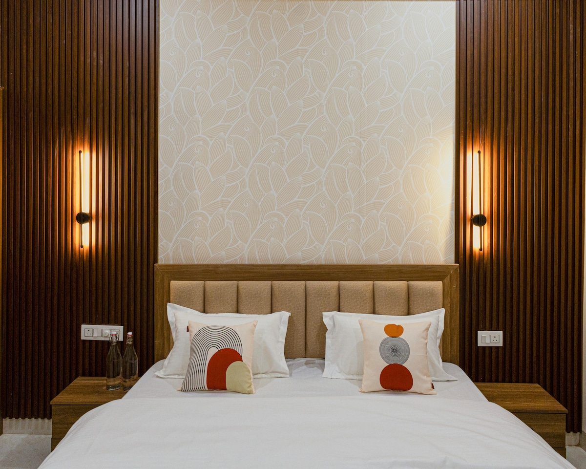 8 Years experienced Airbnb Superhost with 700+ 5⭐️ Reviews Welcome to a serene wabi-sabi–themed 2BHK apartment near Fatehsagar Lake, Udaipur—a space that celebrates simplicity, warmth, and natural beauty. Designed in soothing brown and beige tones, the apartment blends earthy textures, soft lighting, and minimal aesthetics to create a calm and grounding atmosphere. Every corner reflects understated elegance and comfort, perfect for slowing down and unwinding.
