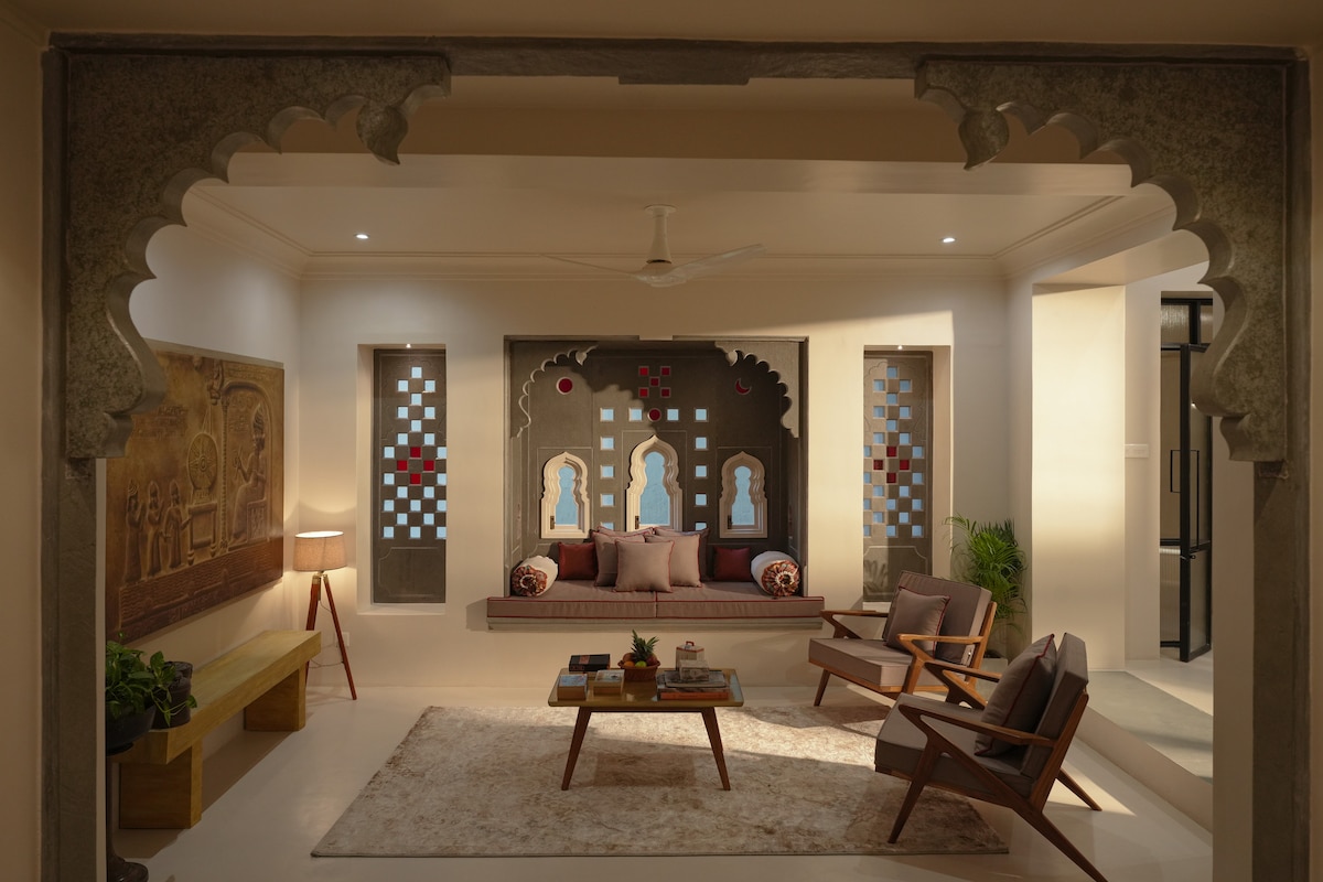 Perched on a quiet hillock in Udaipur’s old city, this terrace villa offers a private retreat above the rhythm of town. Inspired by historic local architecture, it blends lime-plastered walls, stone and glass detailing with clean, modern comfort. Intimate, elevated, and serene — your own corner of the sky, entirely at your pace.