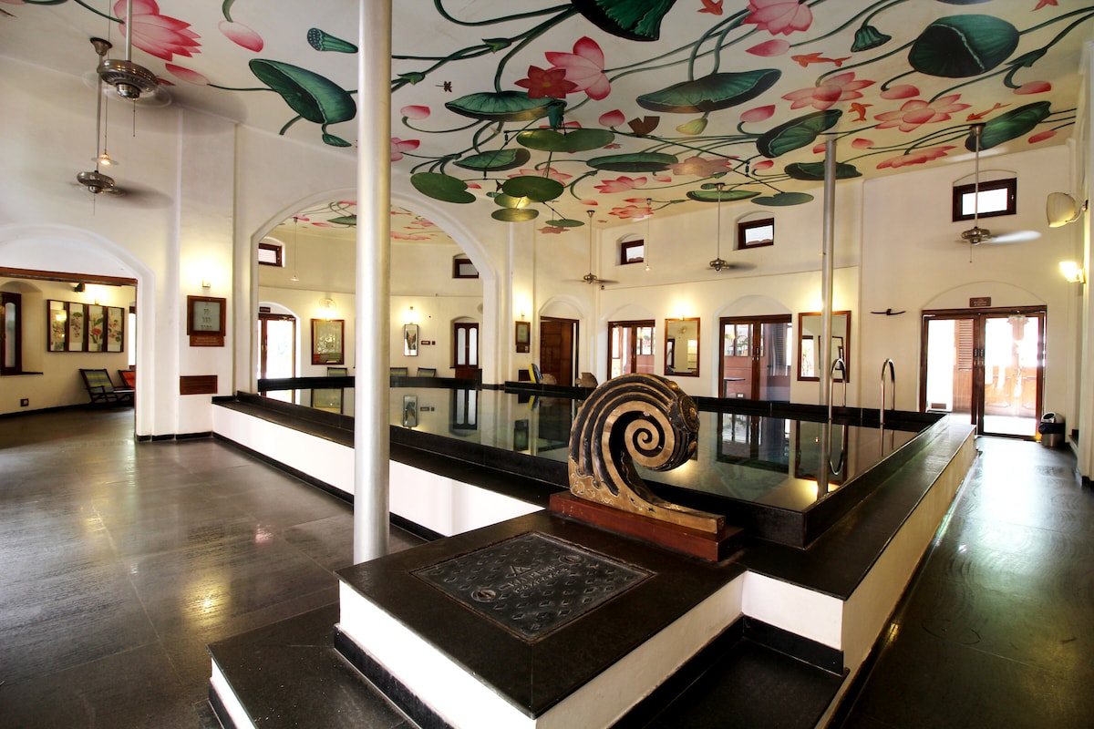 Set in a restored, Baroque-inspired 1924 home, this sprawling heritage hotel linked by courtyards and archways is 6 km from Sabarmati Ashram, one of Mahatma Gandhi's residences. Airy, individually styled rooms offer free Wi-Fi, flat-screens, and modern bathrooms; some have 4-poster beds. Upgraded rooms and suites add unique features such as iPod docks, vanities, living space and/or swings. Most offer verandas or balconies.