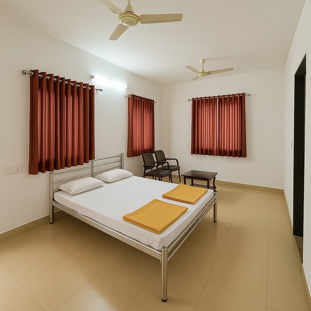 "Step into your sanctuary at Hotel Serene Stay, where comfort and style await. Our thoughtfully designed rooms offer a peaceful haven amidst the vibrant energy of Diamond City (Surat),. Sink into plush bedding,. unwind in modern amenities, and soak in the tranquil ambiance of your surroundings. Whether you're here for business or leisure, our rooms provide the perfect retreat for a restful night's sleep or a productive day of work. Welcome to your home away from home at Hotel Serene Stay."