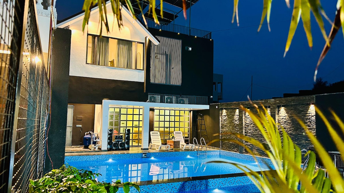 Luxury Villa in the heart of natural landscape 10 minutes from Navsari. Includes a pool and big garden areas which makes the place perfect for partying (or peaceful getaway and for not more than 5-6 individuals) with your friends or family over the weekend. The villa inside a developed farm and can be used for get together. Yes, entire villa will be given. No other guests. Private pool. Closest restaurant would be 10 minutes. Swiggy and Zomato delivers. 12 drive minutes from Navsari.