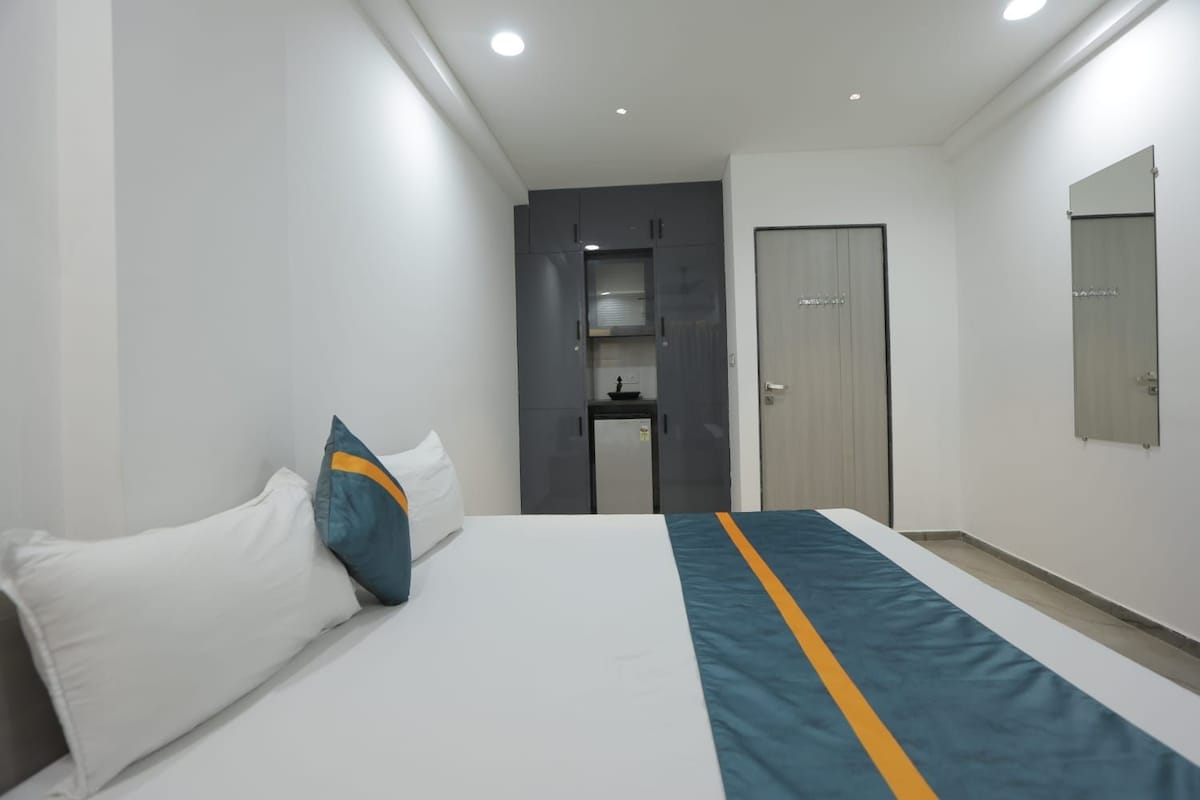 Experience the best of everything space,property,beautiful view,games and delicious food. It's a self check in studio apartment with FREE Wi Fi. It has one king size bed, one sofa bed with attached bathroom. It is located near the Surat international airport. As well as near shopping malls.Travelling facilities like Ola and uber is also available. It's a hotel studio apartment.