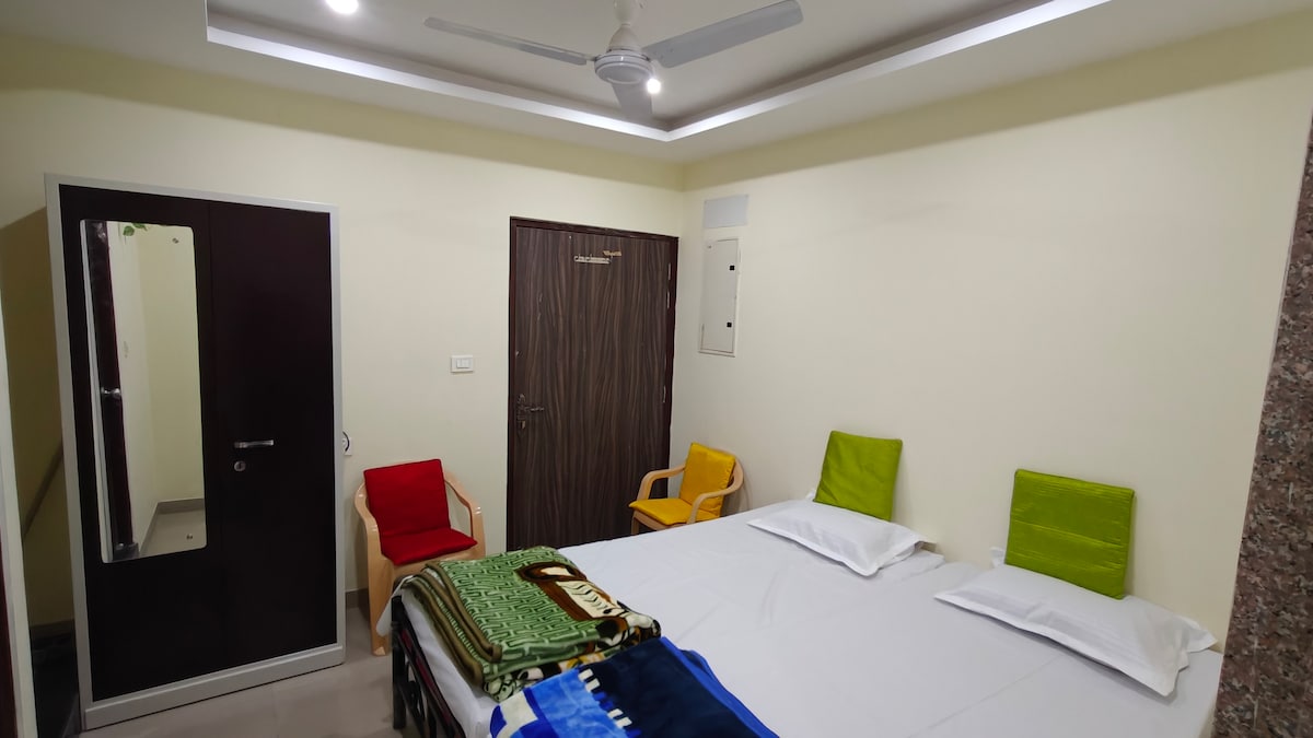 New and stylish 3 bed, two bath, ac flat is in a brand new building with lift. Living area and all rooms with ac (4). TV (LG) with cable. Wifi included. Stylish dining and living furniture. Queen and twin beds with closets and dressers in bedrooms (3 bedrooms) Kitchen with microwave, gas stove with pipe connection, chimney, fridge and microwave proof dinnerware. Utensils provided Aro and washing machine And much more - ideal for families, corporates, NRI, foreign visitors Parking