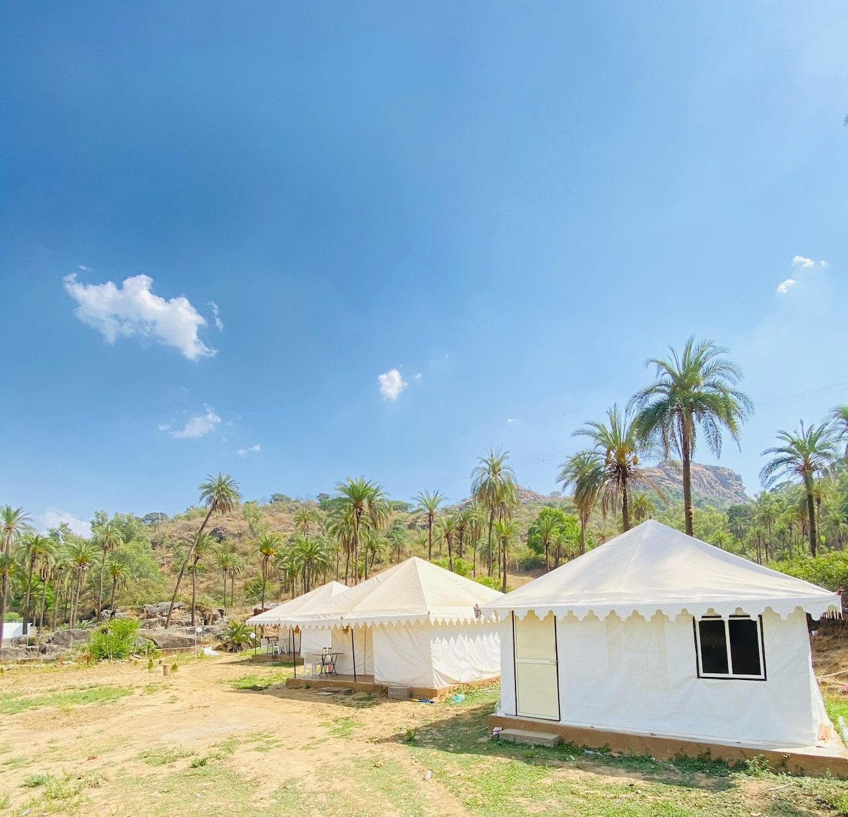 Charges : 999 rs , 1p ● includes : 1. Stay in tent ( 24 hrs) 2. bonfire 3. dinner 4. breakfast ● kindly note : 1. extra meals meals , trekking , rock climbing , zip line will be provided with extra cost. ● Highlights: ©Campsite in wild with stunning nature views. © Quechua & Canvas superior tents © 5 western 6 indian washrooms (shared). © kitchen © 'Dilwara jain temples' - 300 meters
