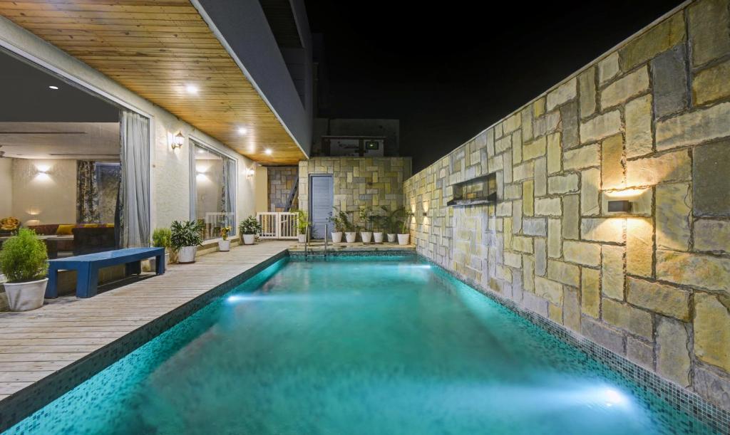 - Airport: 45km (Pick up and drop available at ₹3499 one way) - Railway Station: 30km - Cricket Stadium: 40km - Metro Station: 20km Food is available at additional rates, and further details are provided below. Please thoroughly read the description and house rules as they will likely address most of your queries. We exclusively welcome guests for homestays. Kindly refrain from contacting for marriage functions. Note: This villa does not feature a swimming pool.
