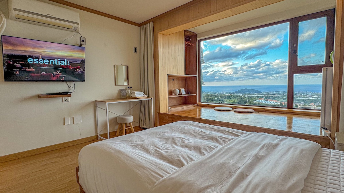 海景双人房-西归浦港的窗户一览无余,房间很漂亮
