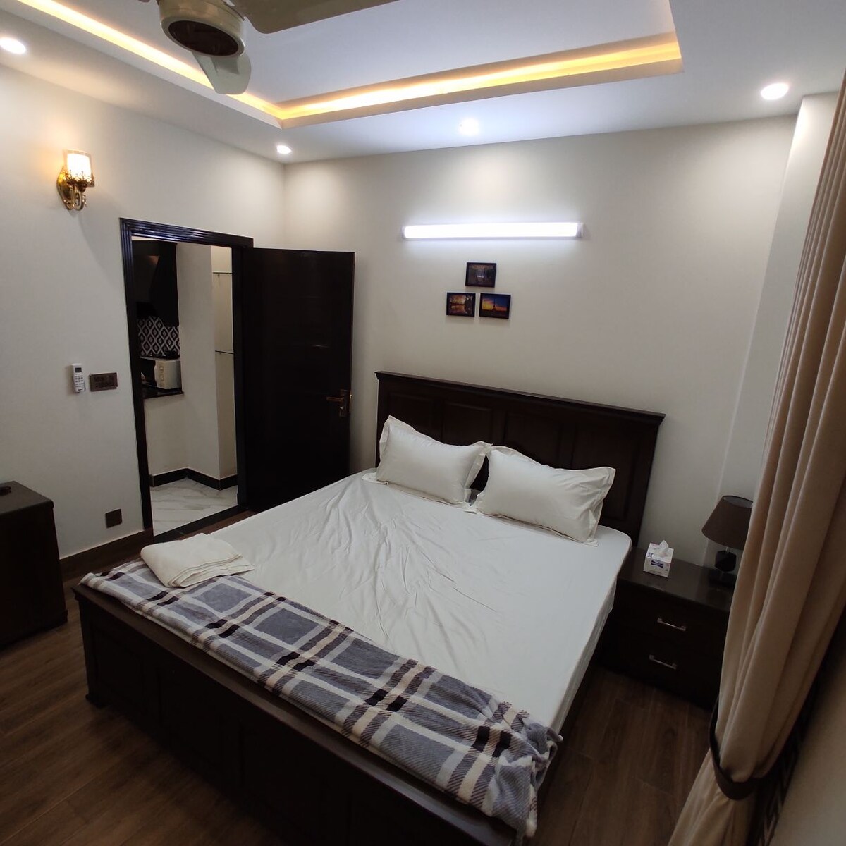 This spacious and comfortable luxury apartment is ideally situated in Phase 4, DHA Lahore, making it perfect for families visiting the city. The centrally air-conditioned one-bedroom apartment ensures a seamless blend of comfort and convenience, offering an upscale living experience with easy access to modern amenities. Located just two minutes from the renowned Y Block market, the nearby mall adds to the convenience with a large grocery store and a variety of restaurants and cafés to explore.