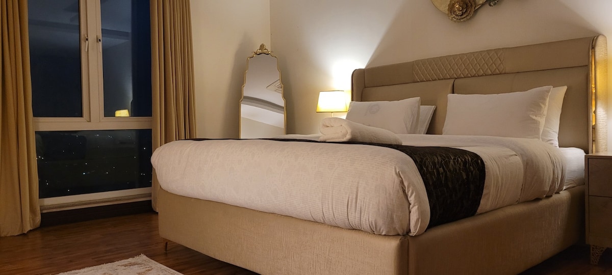 Welcome to Mirhaa Homes, A home away from your home even if you're only here for few days. Experience a luxurious, peaceful and spacious 1- bed room apartment situated at Gold Crest Mall Dha Phase 4 Lahore. A cozy bedroom with a balcony view, a well equipped kitchen, a perfect modern lounge and a sleek washroom. A perfect blend of comfort and convivence. We are determined to make your stay a memorable one every time. So what's with the wait book your apartment NOW
