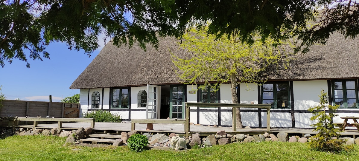 Stille beliggende med ugenert og solrig have. To store solterrasser, udendørs bruser med varmt vand, stort vildmarksbad med jacuzzi. Kun 8 minutters gang fra sandstranden. Huset er ældre men nyrenoveret, med nyt køkken, badeværelse, møbler og nye senge. To soveværelser med 160 x 200 cm senge. Køkkenet er fuldt udstyret, og du finder de mest basale ting som krydderier, kaffe osv. Her er en helt særlig ro, og mulighed for at vågne op til rådyr i haven. 90 minutter fra København