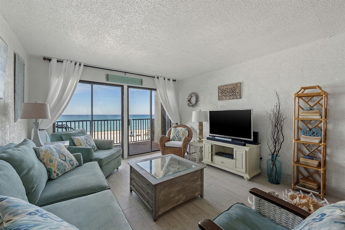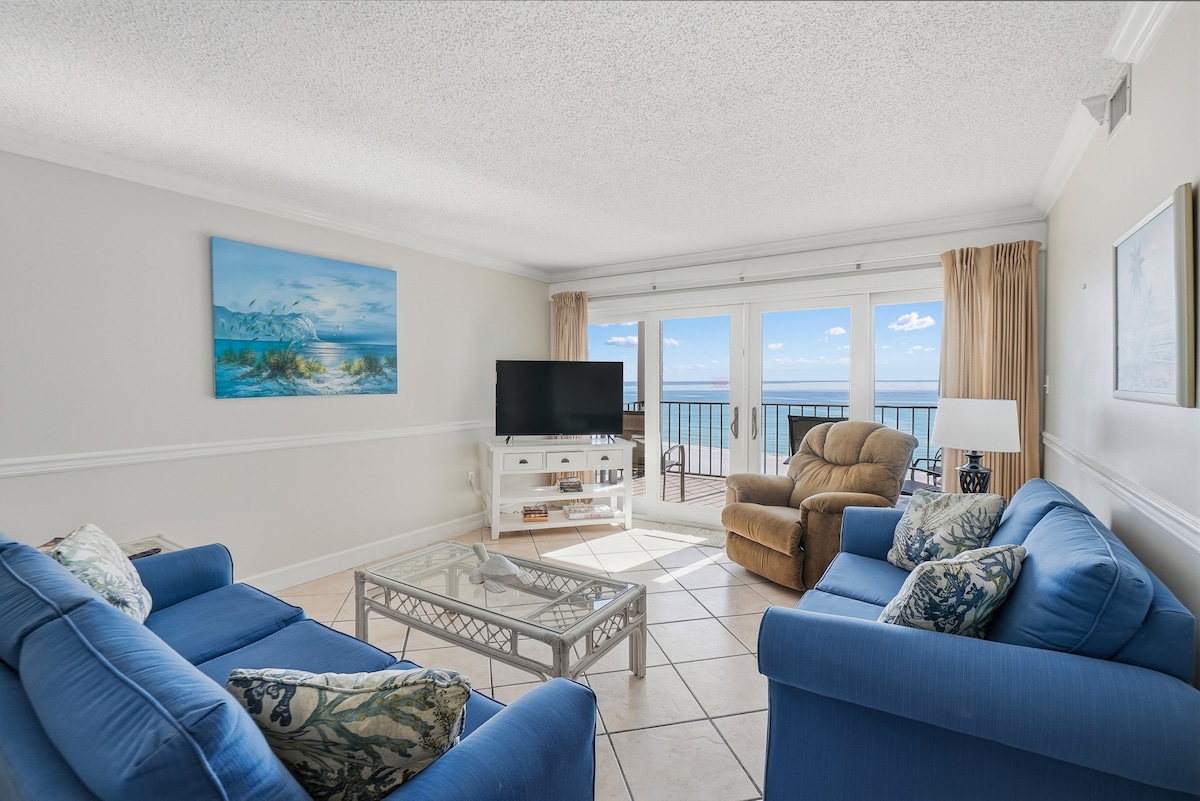 Gulf Crest Unit 1003 is a beautifully updated 10th-floor beachfront condo with stunning Gulf views, offering 2 bedrooms and 2 bathrooms in a spacious open layout. Enjoy a fully equipped kitchen with new appliances, a large sectional, dining space, and Smart TVs throughout. Located in a gated resort with direct beach access, plus pools, hot tubs, a tiki bar, and a fitness center. (No pets or college/high school groups)