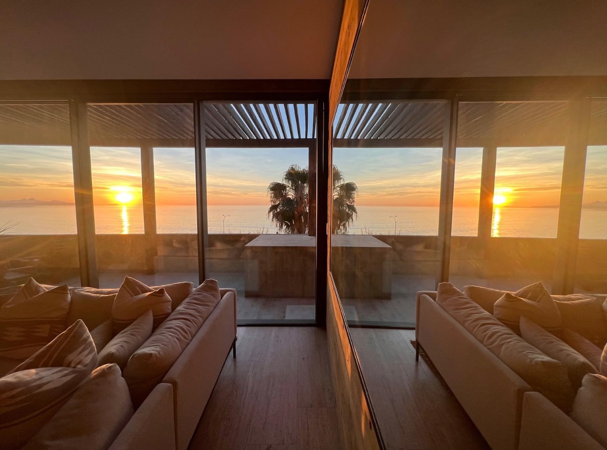 Epic views from every direction! You will be blown away by the beauty of Baja California Sur from this brand new, elegant, and fully appointed apartment. Enjoy coffee on the deck while watching the sunrise over the mountains. After your day surfing and swimming on Cerritos beach (just minutes away by foot or car) relax in the hot tub while the sun is setting over the Pacific. With unobstructed views from every angle you are guaranteed to see whales breach during season. More privacy than condos
