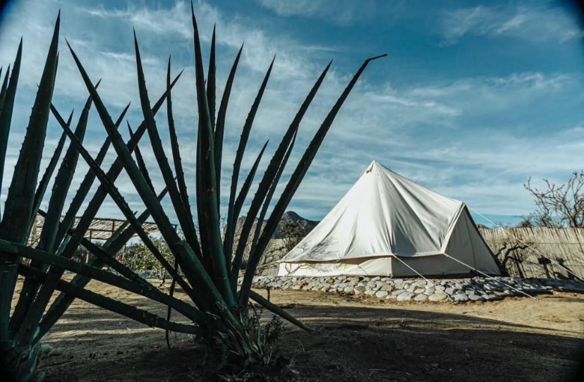 Imagina despertar en el corazón del desierto de Baja. Pasa la noche en una tienda de glamping con colchón matrimonial y baño privado al aire libre. Disfruta una ducha caliente bajo las estrellas, cocina en la cocina exterior o déjanos cocinar para ti! Trabaja rodeado de paz, cactus y silencio. No es solo un lugar para dormir, es un espacio para reconectar, respirar profundo y recordar lo simple y bello que es vivir. ¡Baja te espera!