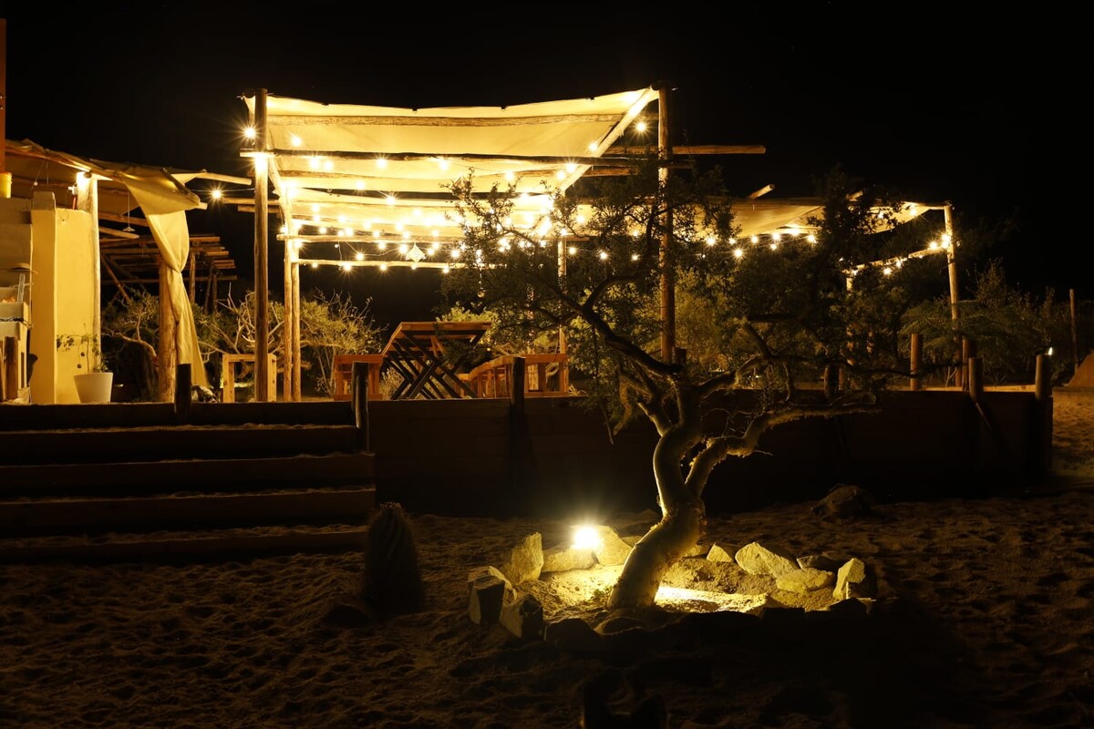 Welcome to K NAJ DESERT GLAMPING! Because we are located just five minutes from the sea (by car), we can assure that you will enjoy a privileged location just a few meters away from crystal-clear waters and beautiful sunsets. You will also find an extraordinary viewpoint that will allow you to observe the summit of the incredible DUNA K NAJ, thus appreciating sunsets and landscapes never seen before Are you ready?