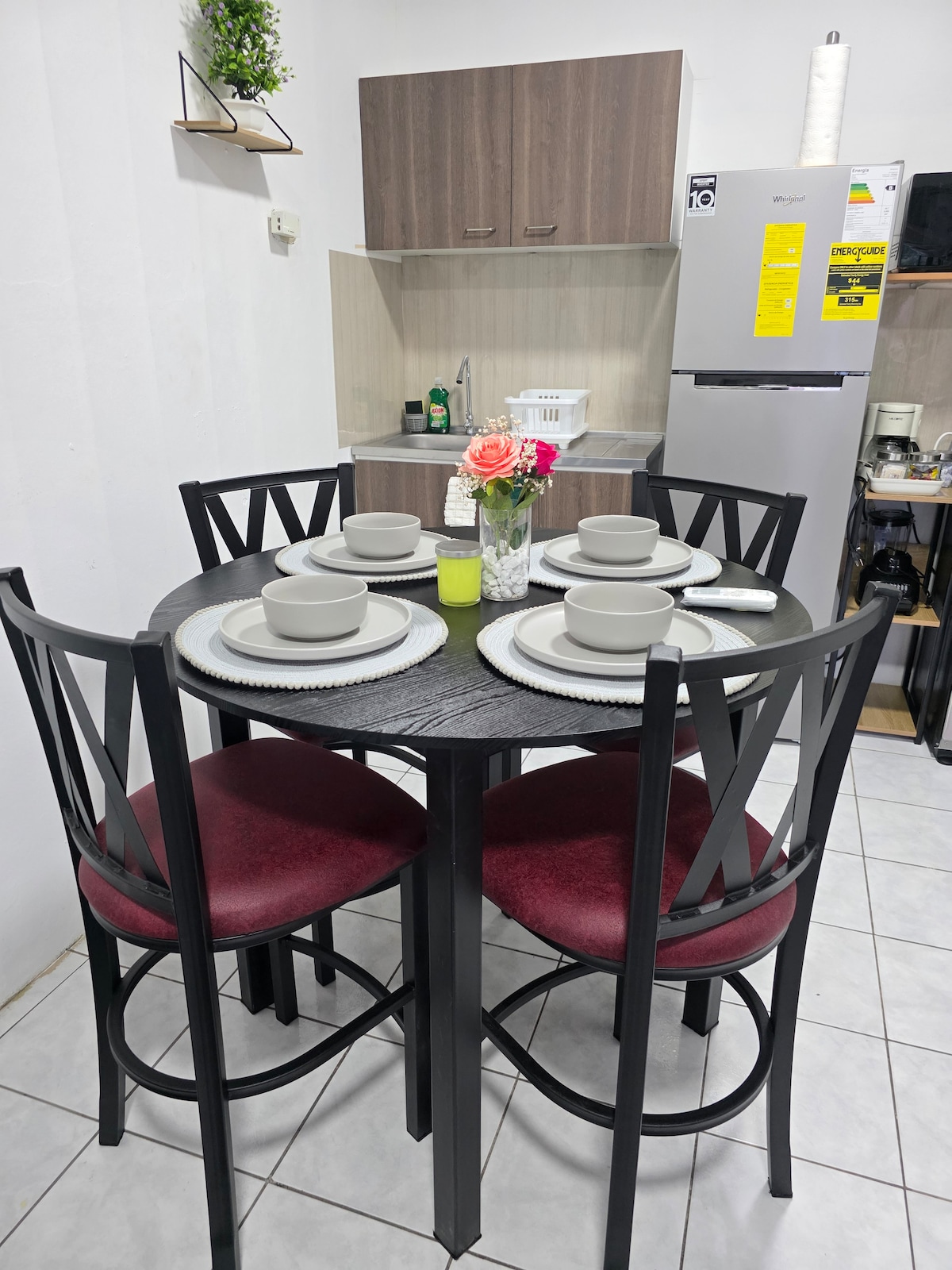 Diseño elegante, a/c; cerca de atracciones, restaurantes, hospitales y tiendas. Alojamiento privado, seguro, - Sala con baño social, sofá cama y smart TV - 1 habitación con litera Queen, baño dentro de la habitación - Barra desayunadora para disfrutar tu comida de Delibery, refrigerador bar (Debes de encenderlo al llegar ) microondas Especial esmero en la limpieza. Te ofrezco papel higiénico, jabón para cuerpo,shampoo, acondicionador Parqueo (Externo) Escritorio portátil con rodos