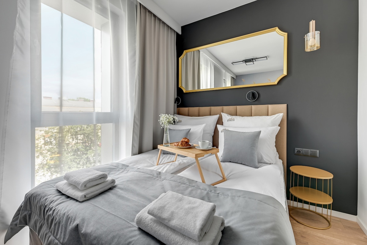 A freestanding bathtub, balcony, and stylish interiors — perfect for couples or families with children! This apartment features a bedroom and a sofa bed in the living room, comfortably sleeping up to 4 guests. On-site amenities include a gym, sauna, rooftop terrace, and playground. Located near Gdańsk’s Old Town and the Motława River — ideal for a romantic getaway or a family stay.