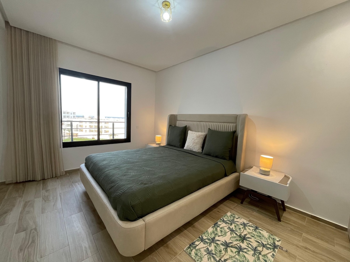 Rapprochez-vous de vos êtres chers dans ce logement familial. Il s'agit d'un luxueux appartement 120 m2 bien équipé qui dispose de deux chambres spacieuses avec dressing. Le salon s'ouvre sur un grand balcon. La résidence met à disposition des habitants une gigantesque piscine avec espace dédié aux enfants. Idéalement situé, cet espace conjugue confort moderne et ambiance authentique, avec des touches de décoration inspirées des villes mythiques de Tunisie telles que Sidi Bou Saïd et Hammamet.