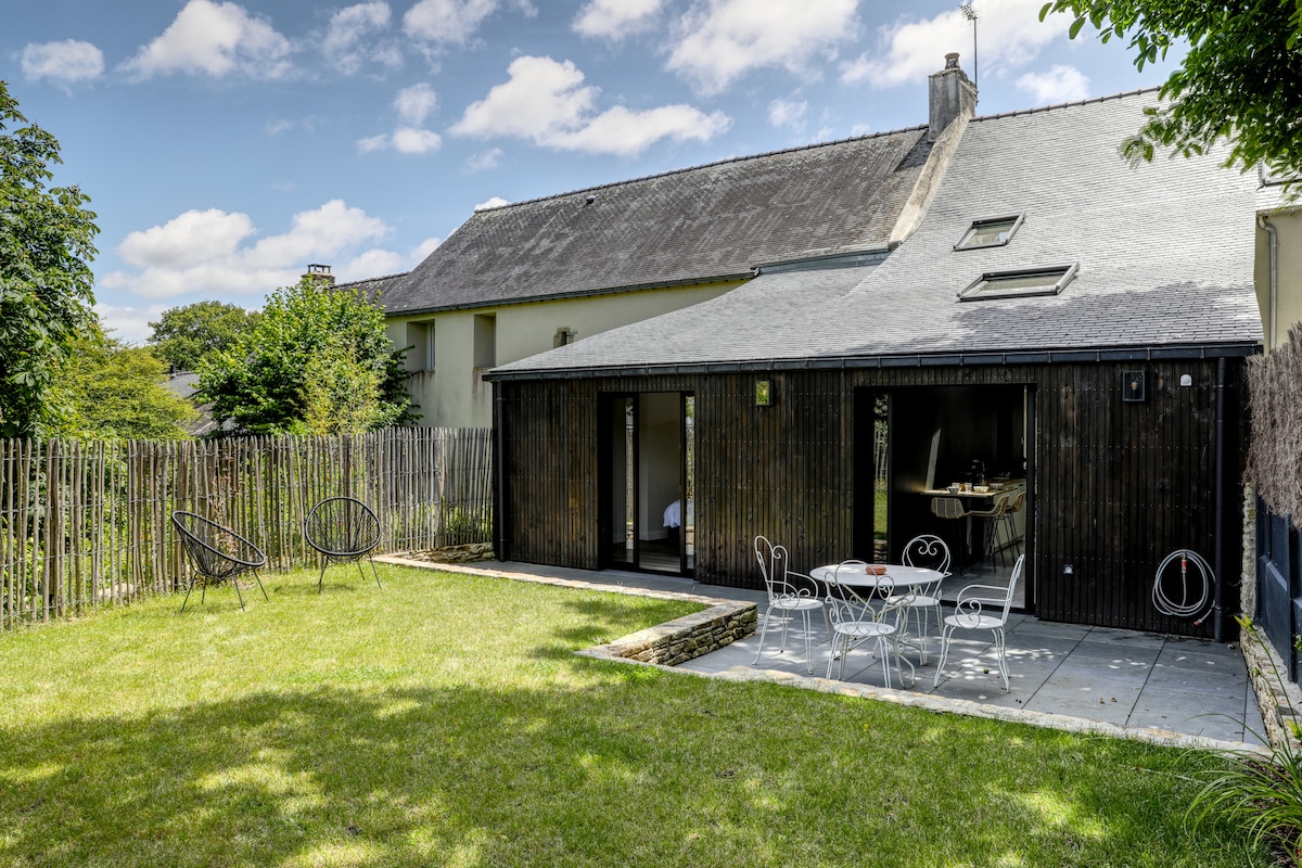 莫尔比昂湾附近带户外座椅的度假屋