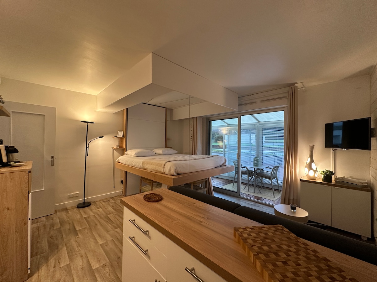 Petit coin de paradis à l'arrière de notre maison idéal pour découvrir notre magnifique région à toutes saisons. Situé à 300 mètres d'une très belle plage de sable fin et des sentiers côtiers, profitez en amoureux d'une vrai parenthèse détente. Après une belle balade, venez vous détendre en terrasse privative avec coin salon ou bien dans le SPA privatisé haut de gamme mis à votre disposition été comme hiver. Studio 22m2 sans vis à vis pour 2 personnes. Arrivée flexible selon disponibilité.