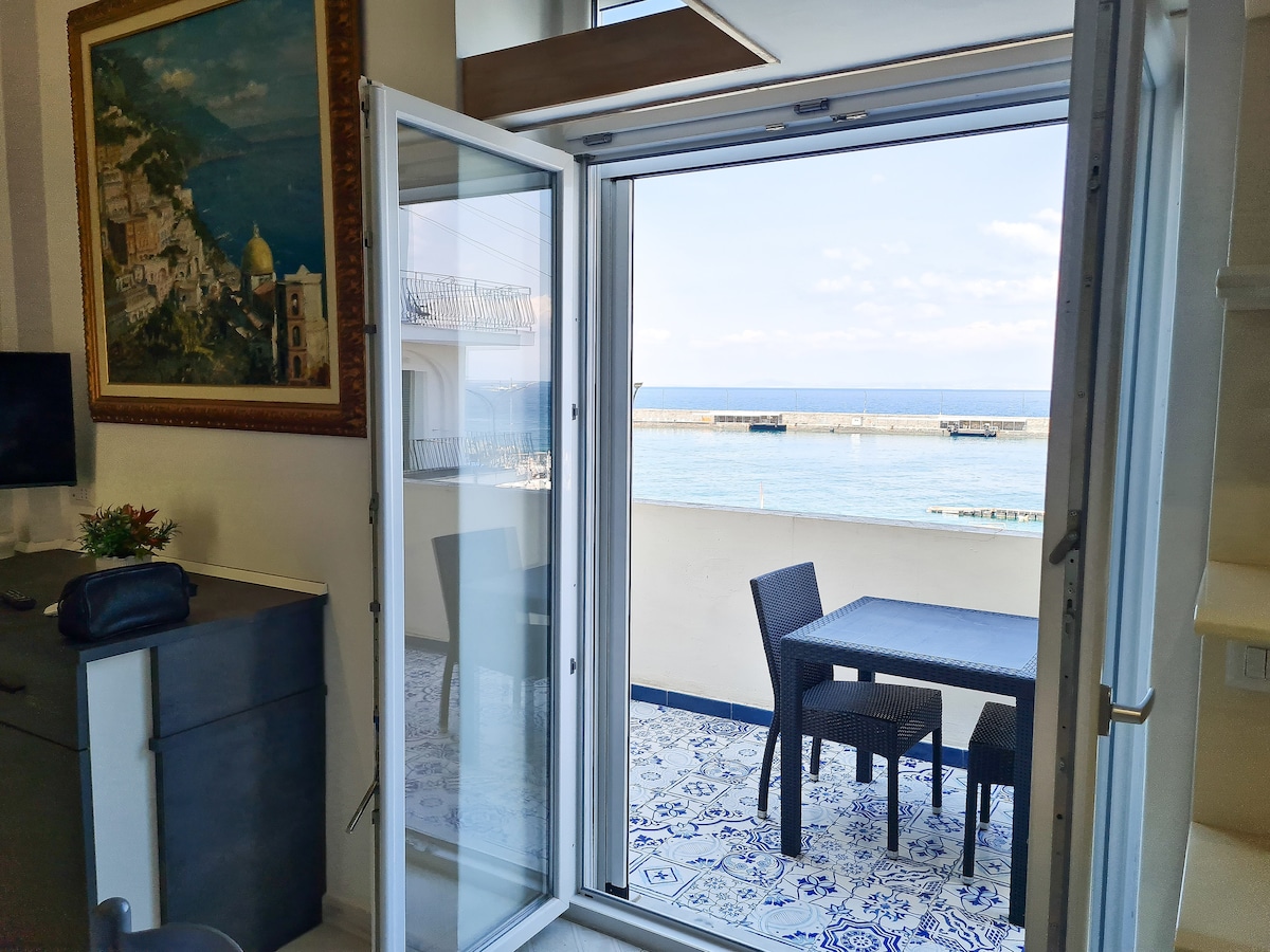 "Sorrento Sea Breeze" is a spacious 1-bedroom apartment with 3 balconies overlooking the fishing village of Marina Grande and Mount Vesuvius. Live among the locals with the comforts of a modern accommodation. Enjoy the view and relax with your partner from the intimacy of a panoramic tub. The apartment is strategically located to enjoy the livelihood of the marina and hop on a boat to Capri and Positano. Please note that the apartment is located on the 3rd floor with no elevator.