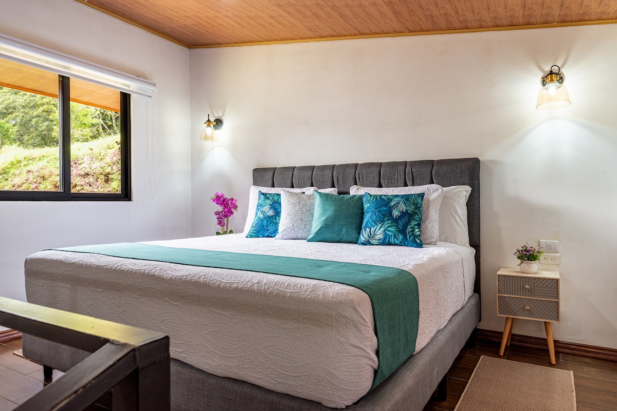 You’ll enjoy being just steps from Jacó Beach and within easy walking distance of restaurants, cafés, shops, surf schools, and convenience stores. The private king bedroom, open loft with queen bed, bright living space, and fully equipped kitchen offer the comfort and convenience you need. The large pool, tropical gardens, handmade wood details, fast WiFi, and peaceful atmosphere create the perfect place to relax, explore, and enjoy everything Jacó has to offer.