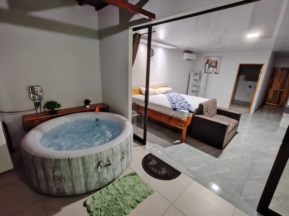 Relájate en este espacio tan tranquilo y elegante. A 1 km del centro de Fortuna y a 300 m del Salto. Camino a la catarata de la Fortuna. El loft cuenta con terraza deck, piscina, jardín, un cuarto con cama king, baño, cocina totalmente equipada, centro de lavado, parqueo privado, AC, acabados de lujo, vistas extraordinarias hacia el volcán y en contacto con la montaña, ideal para citas románticas, relajarse y pasarla bien lejos del bullicio de la ciudad, pero a solo 2 min del centro de Fortuna.
