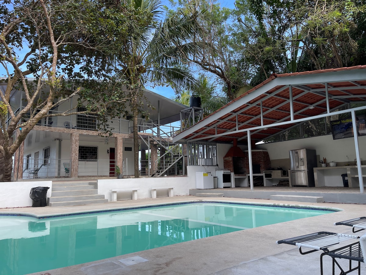 Disfrute con la familia y/o amigos en este tranquilo lugar rodeado de naturaleza del área de Reserva natural ubicado en un Residencial privado de Punta Leona, muy cerca, tan solo 5 minutos a pie, de Playa Mantas. Con posibilidad opcional de ingreso a instalaciones del Club Punta Leona con una módica cuota.