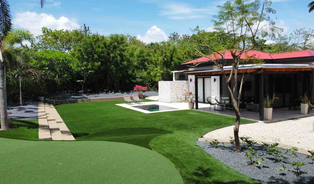Enjoy my little casita. you have your own entrance. The accommodation is within our property where we live all year round. it is located in pinilla hacienda (in front of marriot hotel). 500m from the beach ( mansita, avellana, langosta). It is a secure site where you can park your car. We share our huge swimming pool (23 m long). In hacienda pinilla, You could enjoy in to play golf, pickeball, ride a bike, surfing (with additional costs). We also have a dog.